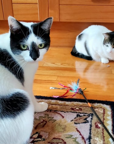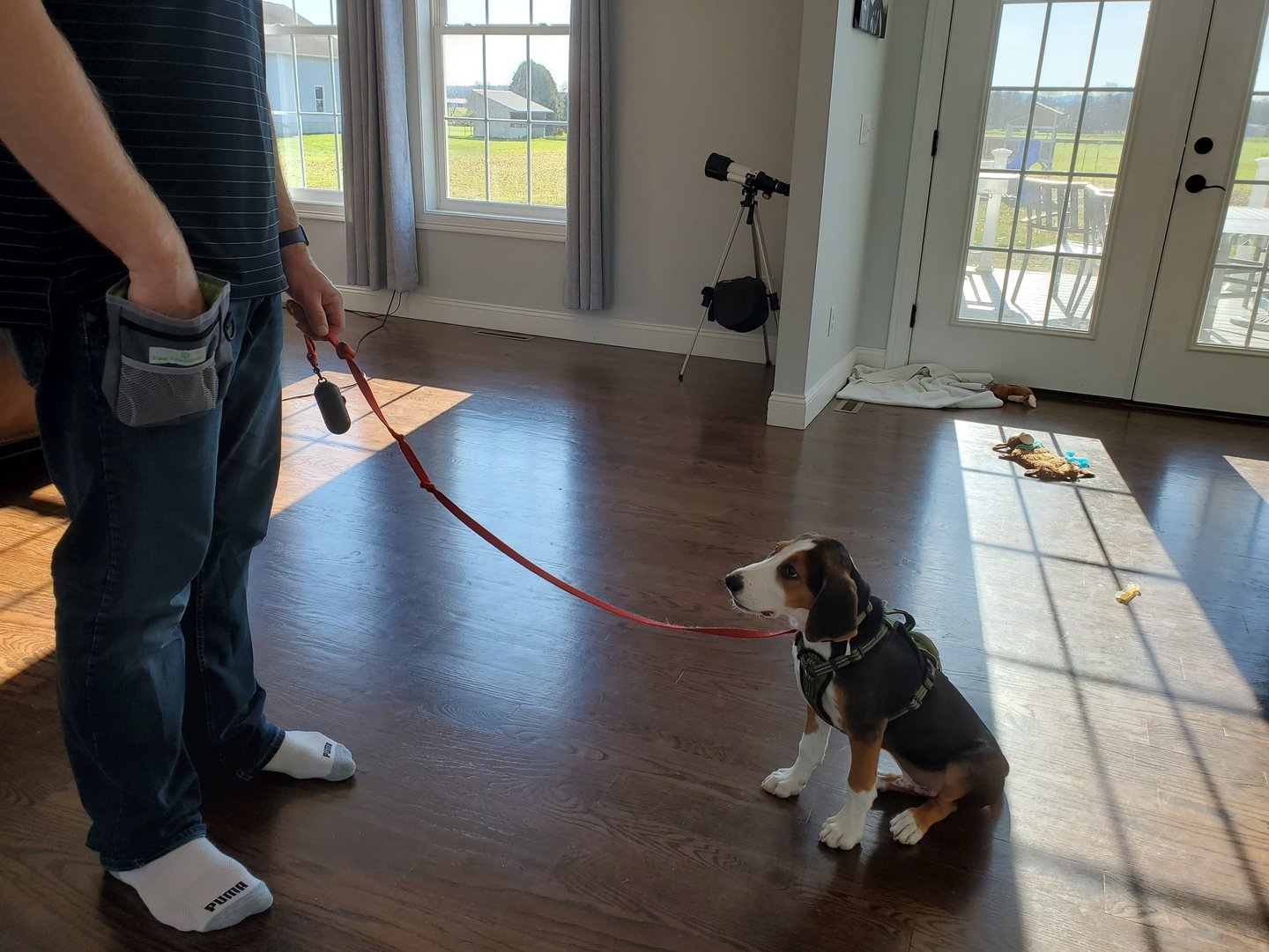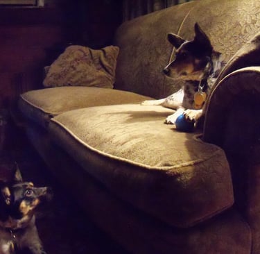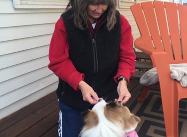 Dog walks or let out, and playtime with lots of lovin's.